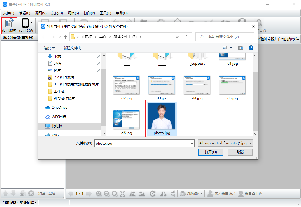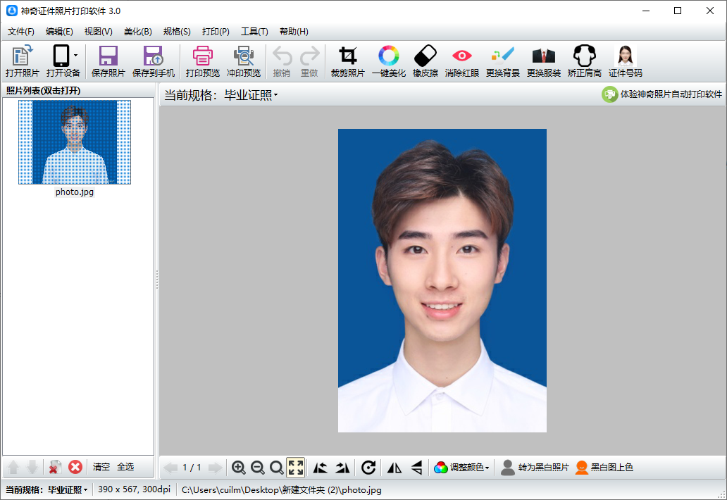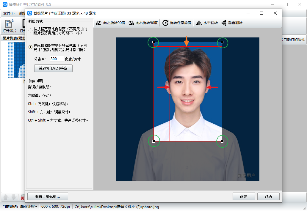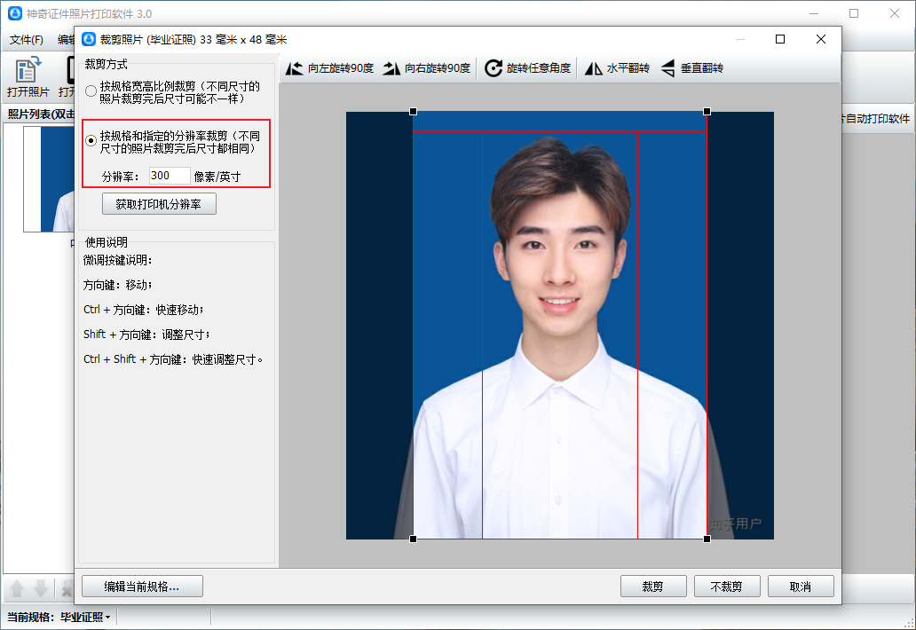 神奇证件照片打印软件支持各种规格的证件照片,不同规格的照片尺寸肯定是不相同的,那么就需要对照片进行裁剪。