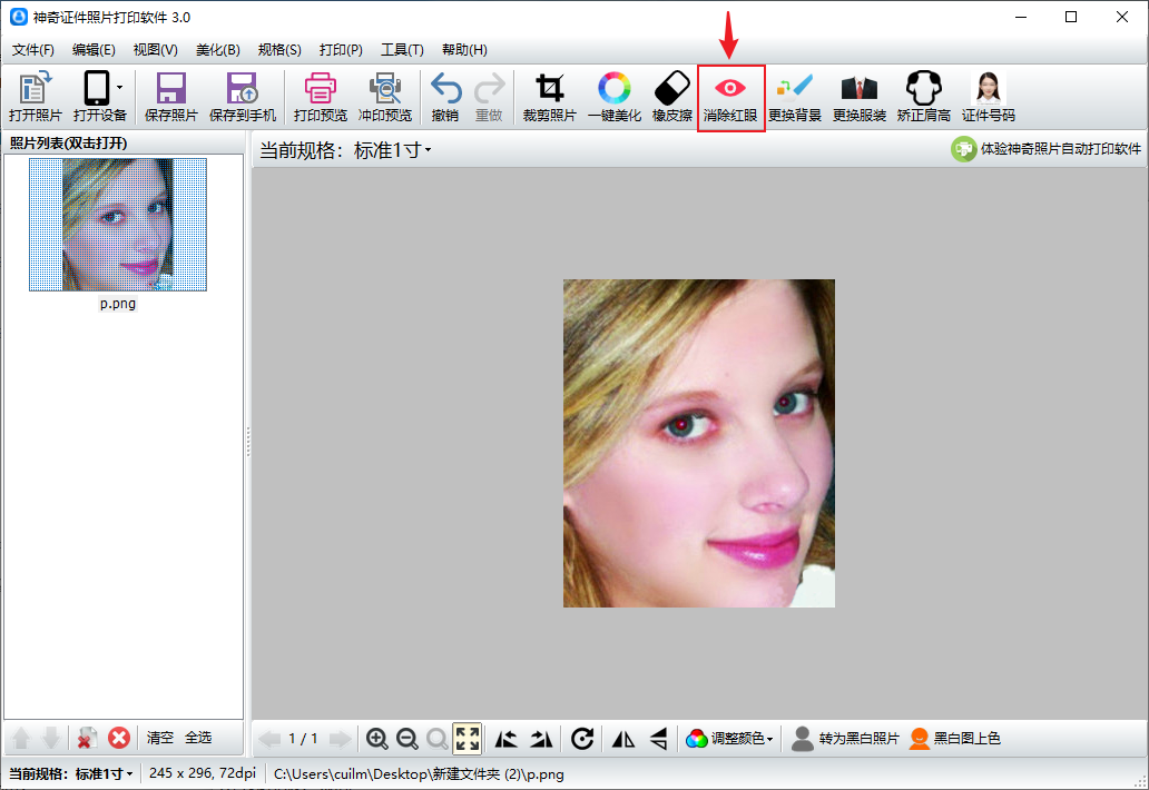 我们的神奇证件照片打印软件具有一键去除红眼的功能,彻底解决照片红眼的问题。