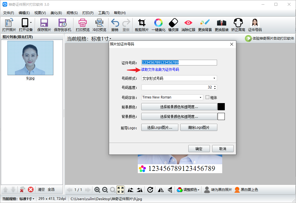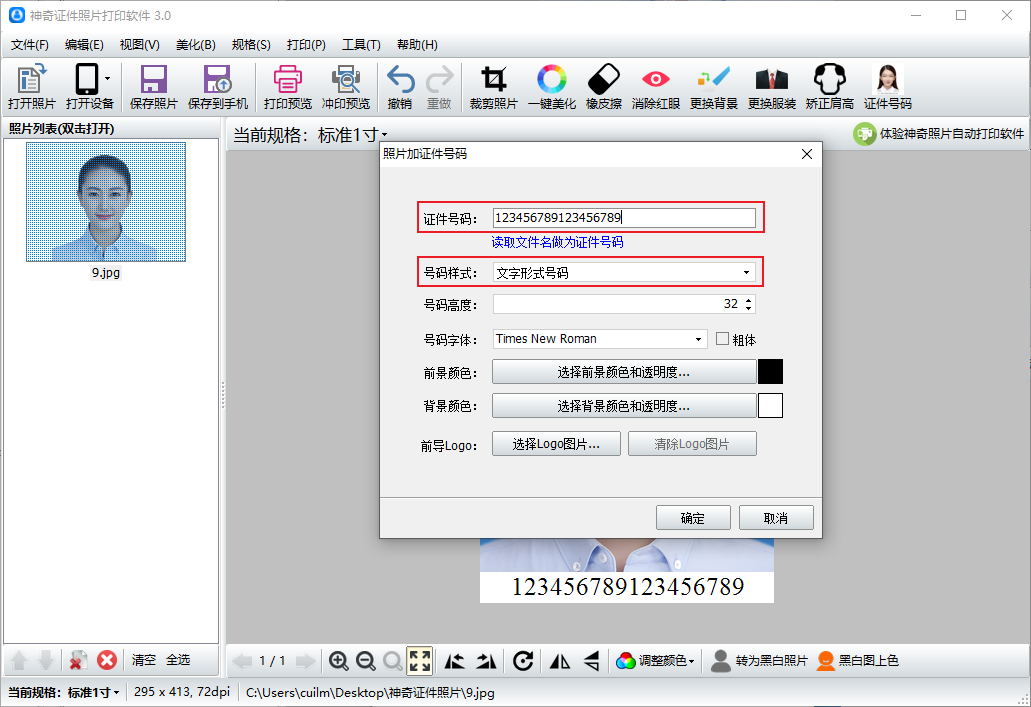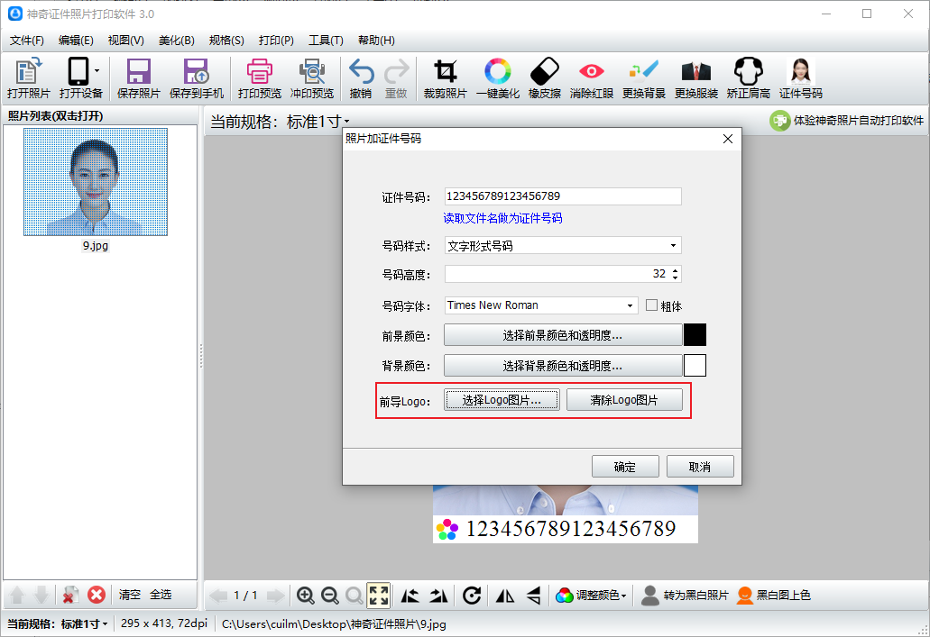 很多用户需要在证件照下方加上证件号码和图片或logo,这个功能神奇证件照片打印软件实现起来很容易,下面就一起学学吧!
