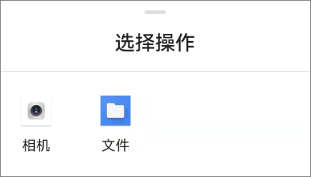 五、出现两个选择,点击相机直接可以拍照,选择文件,在手机里选择一张照片。