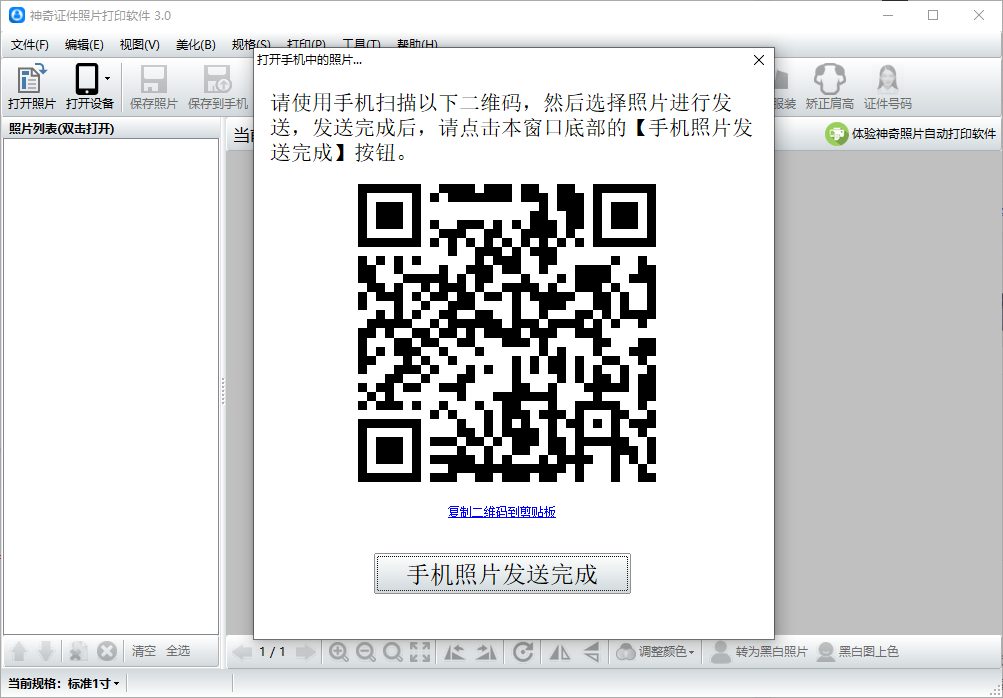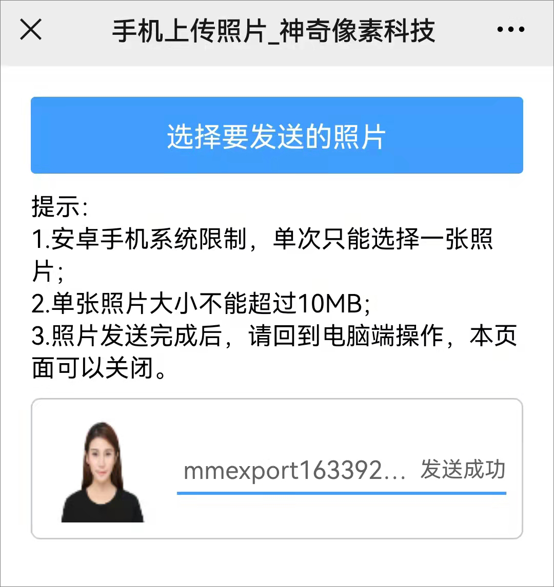 七、发送成功后,回到软件,点击手机照片发送完成。