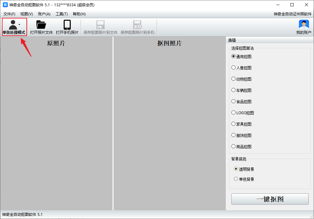 1、打开神奇全自动抠图软件,选择单张处理模式。