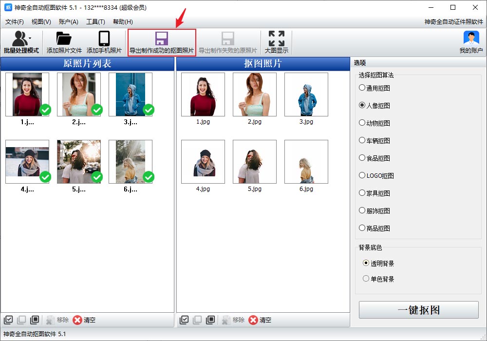 6、点击导出制作成功的抠图照片,将图片保存在电脑上。