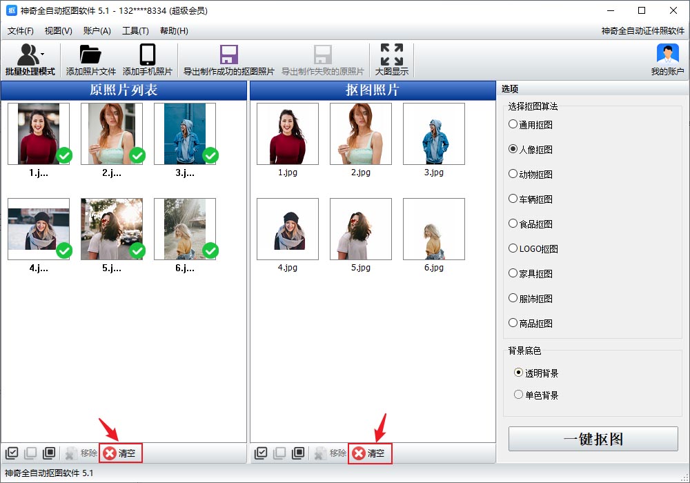 1、在批量处理模式时,如果要删除所有照片,可以点击清空按钮。