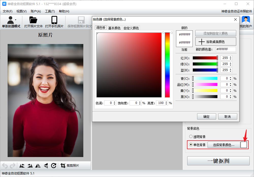 3、背景底色也可以选择单色背景,点击小色块,可以在弹出的界面中选择需要的颜色。