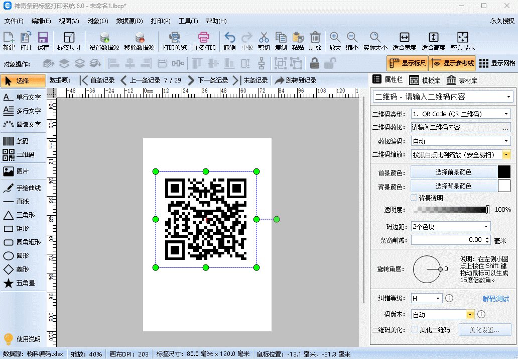 二维码缩放:支持按黑白点比例缩放(安全易扫)和拉伸缩放撑满对象尺寸两种模式
