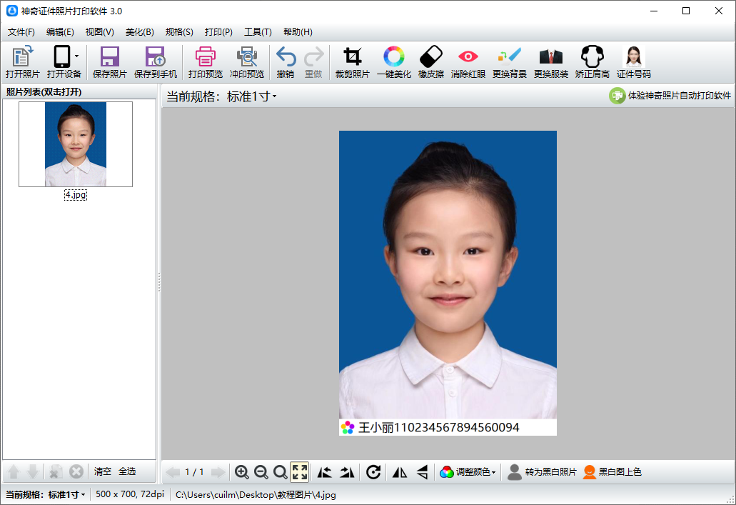平时我们在工作中,报名考试,办理业务等需要用到电子证件照,而且还有的会要求在证件照片的下方添加姓名和身份证号码。这种时候不需要跑一趟照相馆,自己动手也可以实现。下面小编使用神奇证件照打印软件来教给大家如何实现。