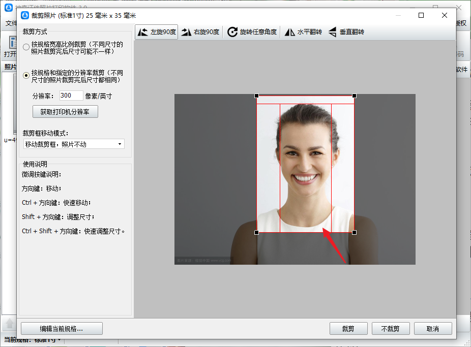 点击【打开照片】,选择一张照片导入到软件中,因为我们已经选择了照片的规格,所以此处会根据尺寸对照片进行裁切。