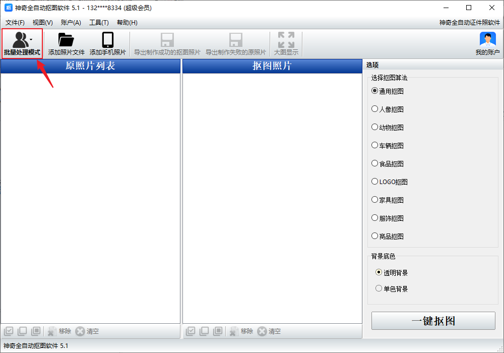 1、打开神奇全自动抠图软件,选择批量处理模式。