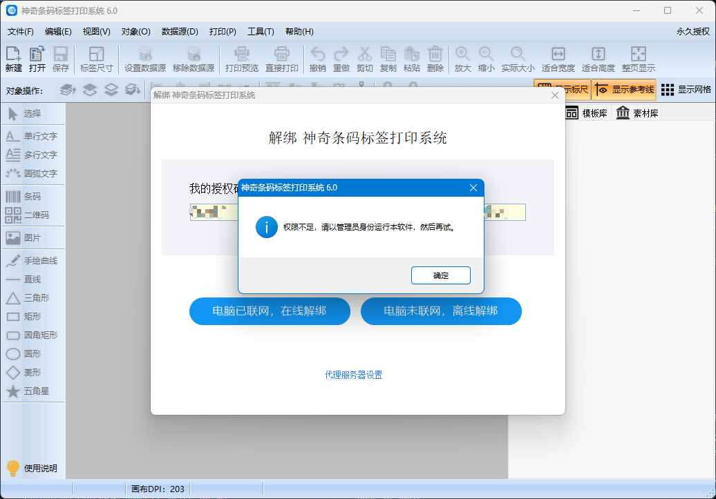 本文以 “神奇条码标签打印系统” 为例演示解绑软件的全过程,其他软件类似(个别软件可以在设置中找到解绑按钮)。